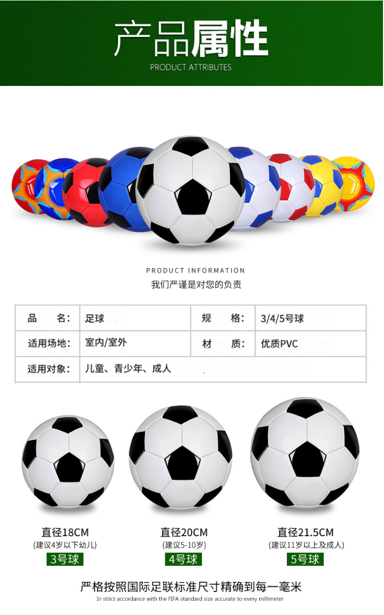 メーカー卸売厚みのあるサッカー子供用サイズ 3、4、5 大人小中学生 PVC ミシン縫い印刷可能なロゴ