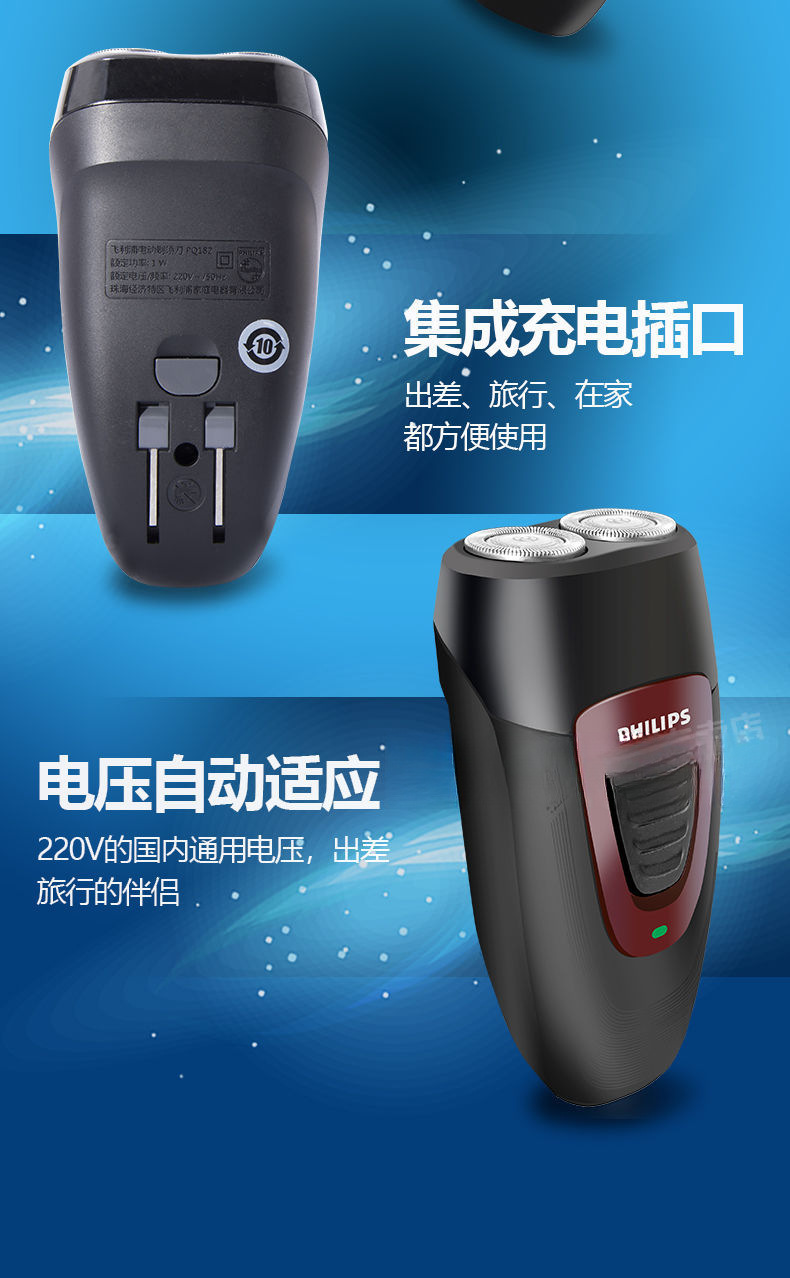 飞利浦电动剃须刀男士双刀头便携电动刮胡刀PQ182、PQ206、PQ190