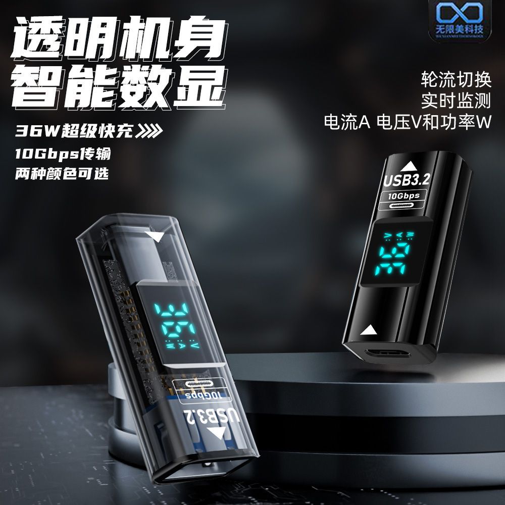 TYPE-C USBデジタル表示変換ヘッドはOTGデータ転送C公転母透明表示電流電圧をサポートしています。