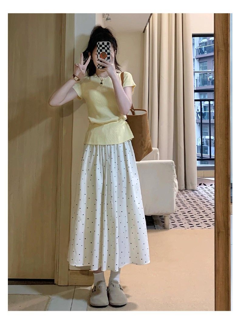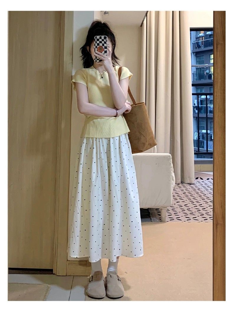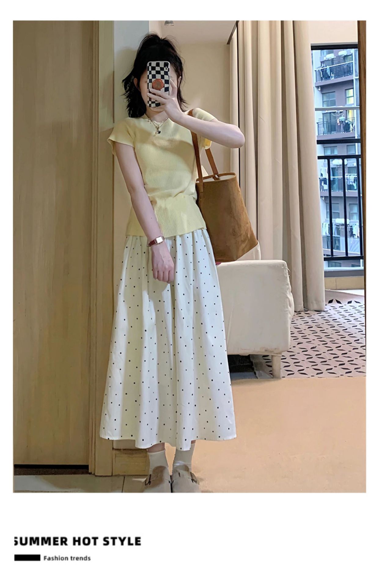 水玉模様のスカート レディース 夏 2025年新作 韓国風 ハイウエスト 股間をカバー 着痩せ効果 フレンチスタイル Aライン パラソルスカート ハイウエスト 着痩せ効果
