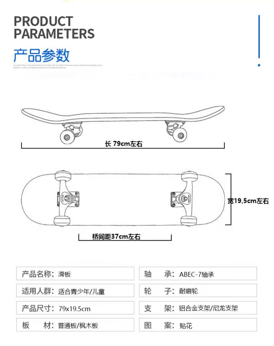 メーカー卸売り2406四輪スケートボード初心者双反り男女両面児童車6-12楓木スケートボード車