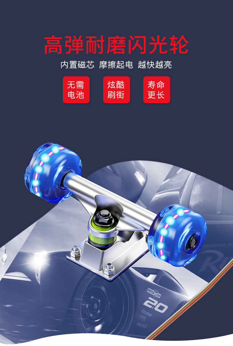 スケートボード初心者青少年男子学生専門板双反り四輪スケートボード3-6-12歳