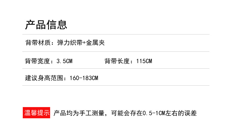 成人男性3クリップ延長ズボンベルト優品男性プリントシャツバッククリップ3.5cm肩ひもファッションカジュアル