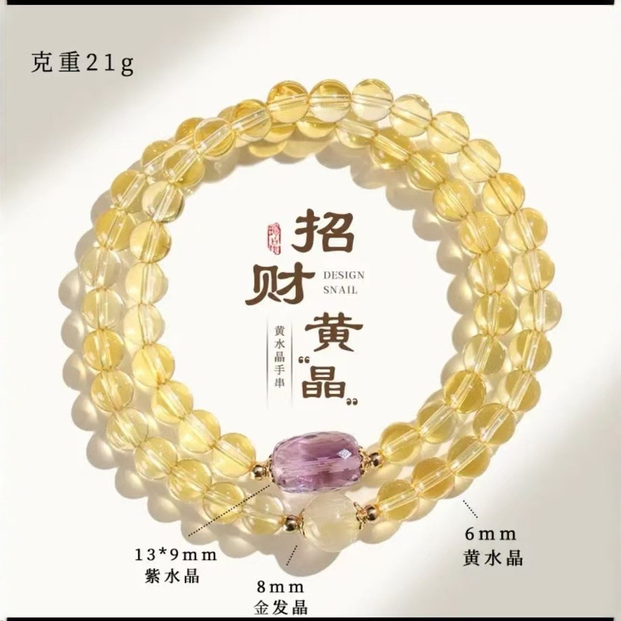 天然金发晶双圈手链女招财紫水晶黄水晶手串轻奢高级感叠戴饰品