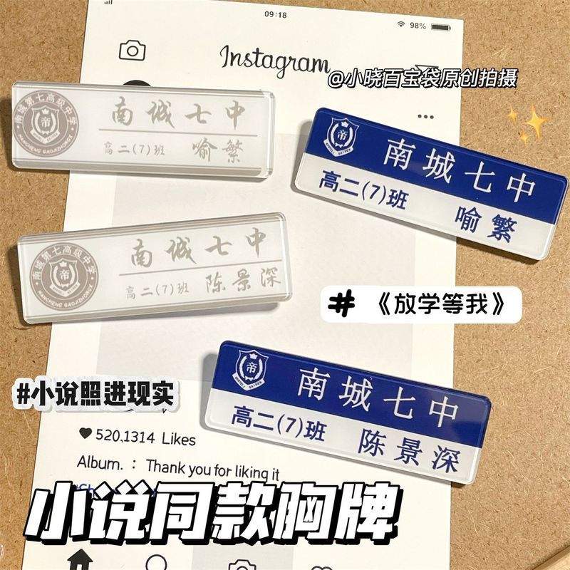 【放課後待ってて】小説陳景深の比喩繁体字周辺学校紋章ブローチ名札学生バッグペンダント