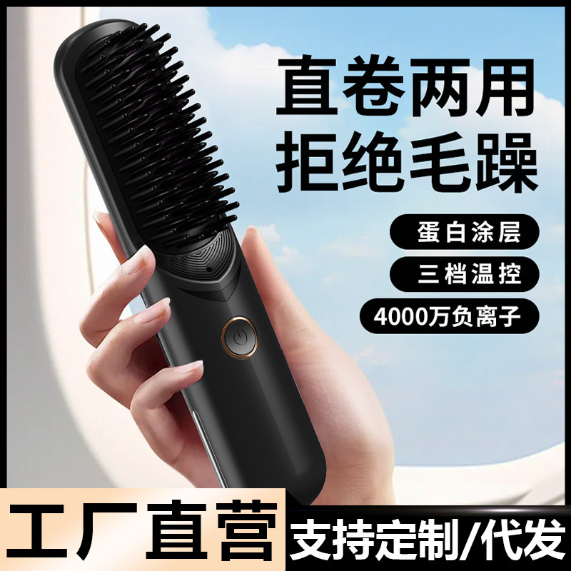 国境を越えた電気商の新型無線ストレート櫛マイナスイオンヘアケアはUSB充電携帯型ストレートカールを傷つけない