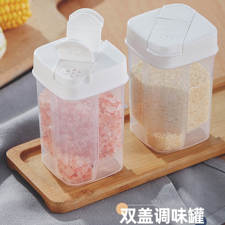 ダブル蓋調味料缶キッチン家庭用塩味の素調味料ボックス密封防湿大口径透明計量可能調味料瓶