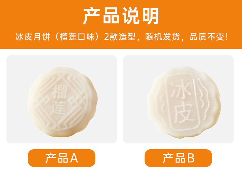 H爆浆榴莲味冰皮月饼榴莲夹心广式月饼中秋节送礼冰皮水晶月饼