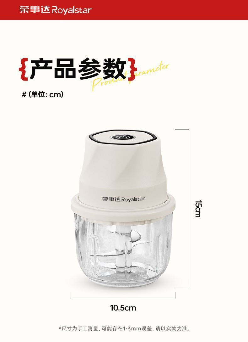 Royalstar ワイヤレス電動ガーリックマッシャー キッチン 家庭用ミートグラインダー 小型チリディップ