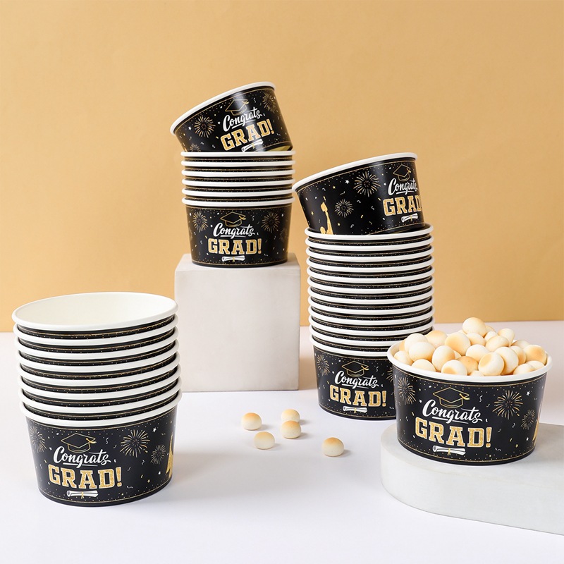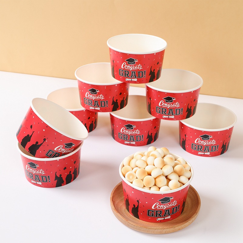产品名称:毕业季派对纸碗一次性纸碗冰淇淋碗餐具冰激凌零食纸碗圆形打包盒