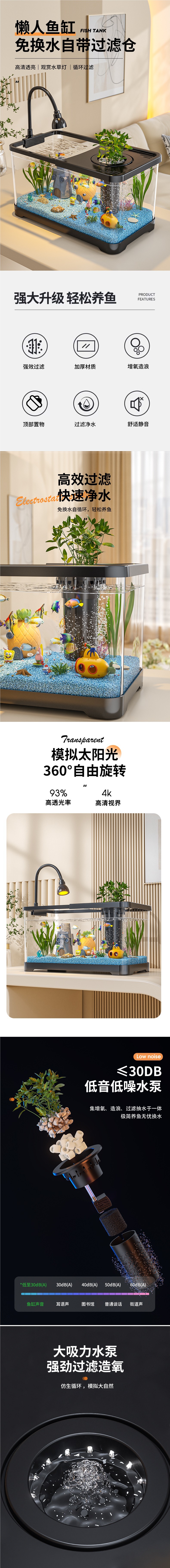 水槽小さなリビングルーム 2025 新しい生態学的濾過酸素発生器オールインワン透明家庭用デスクトップカメ飼育タンク