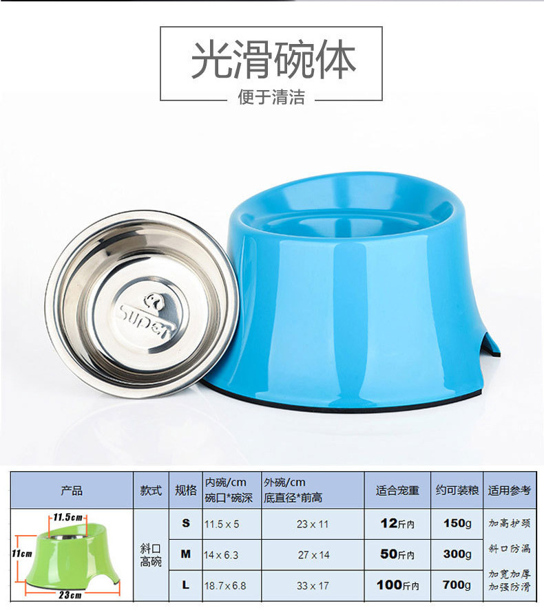 新しい高さのある首保護犬ボウル、ステンレス鋼ボウル、転倒防止犬ボウル、傾斜口、小型および中型犬用の高ボウル、犬用給餌ボウル