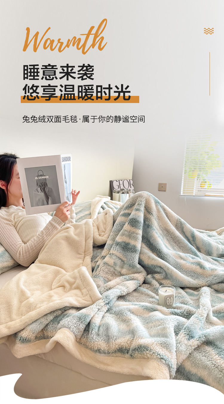 テディベルベットライト高級ハイエンドウサギベルベットブランケット多機能インクプリント二層ブランケットブランケット厚みのあるブランケット