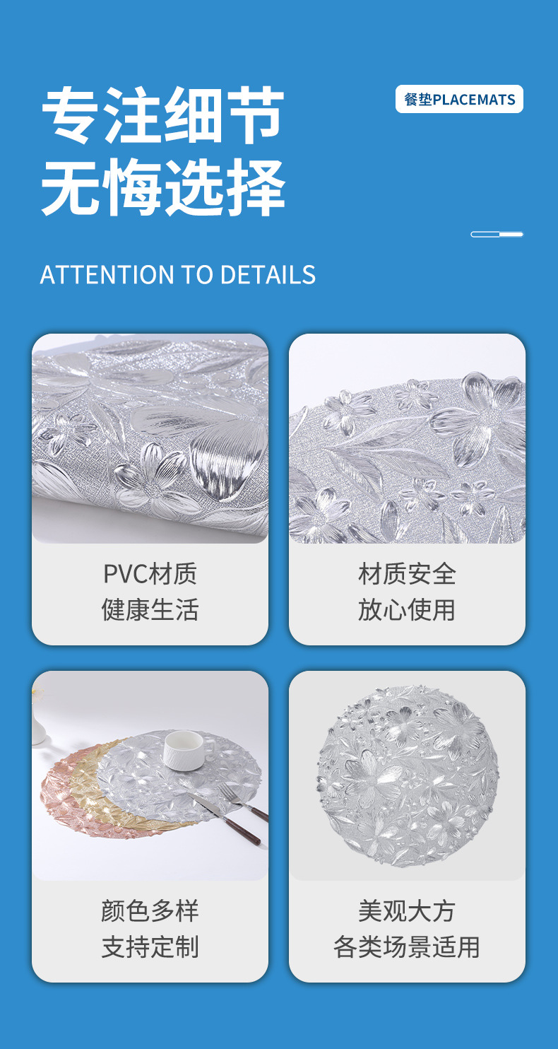 聖特PVC月季加底箔押し食マット滑り止め箔押しコースター花案アイデア装飾ホームホテル食卓