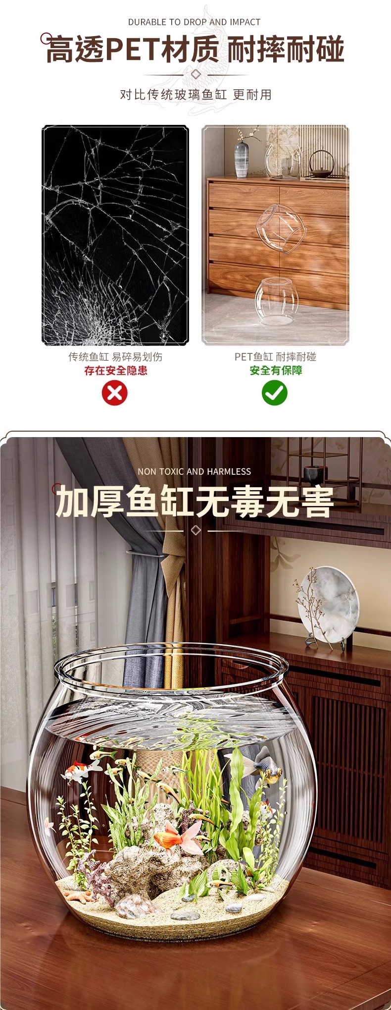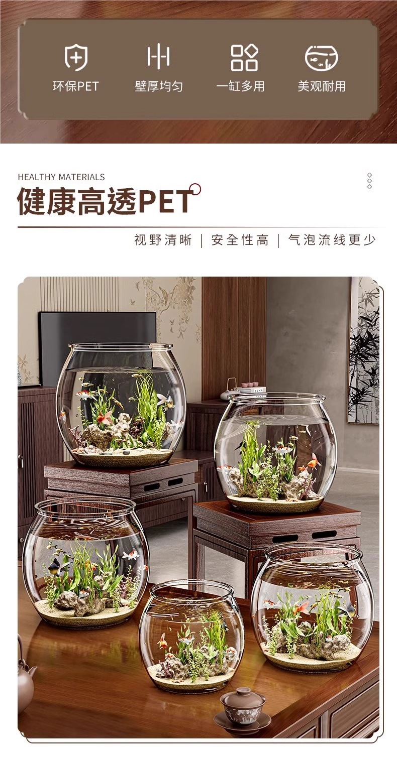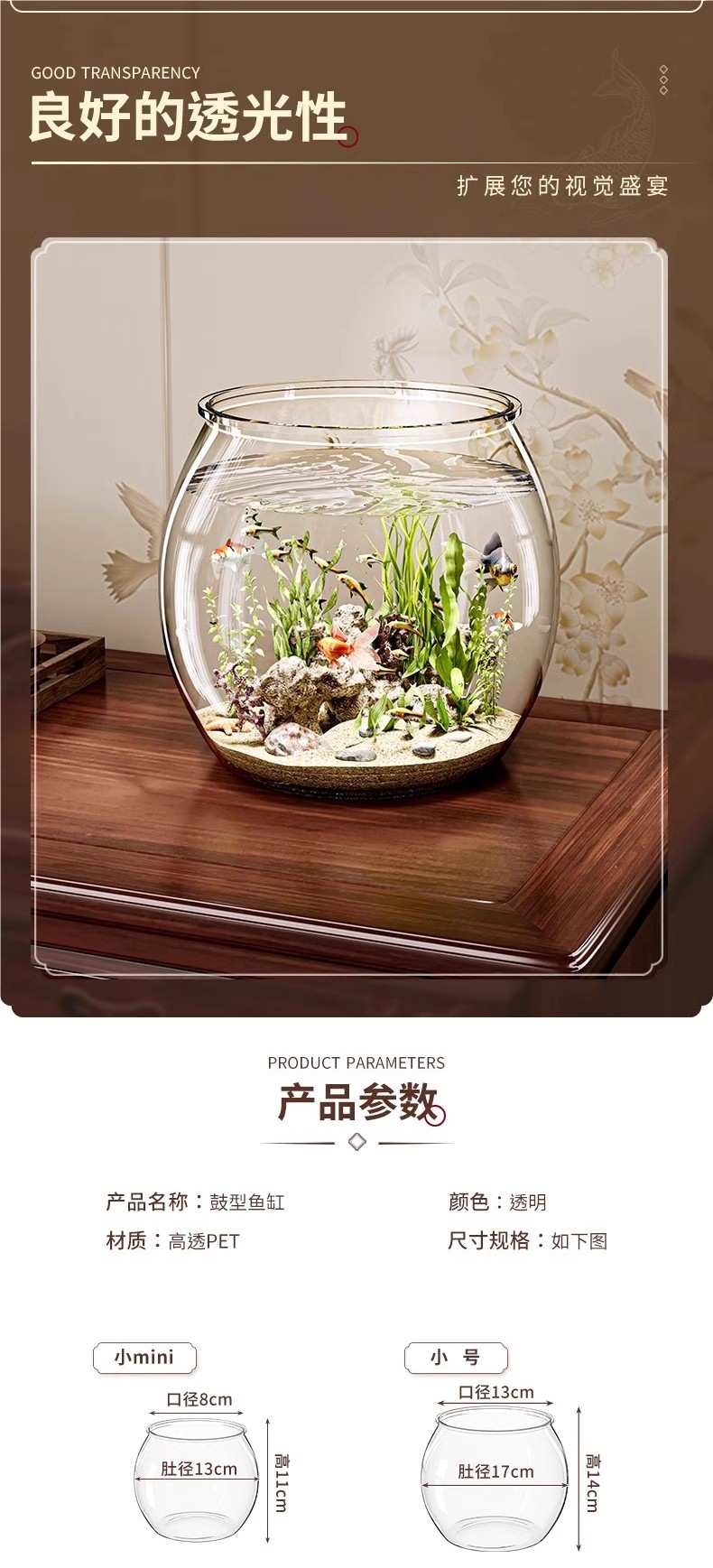 ラウンド水槽プラスチック一体成型落下防止、壊れにくい、高透明模造ガラスリビングルームデスクトップエコロジカル小型水槽