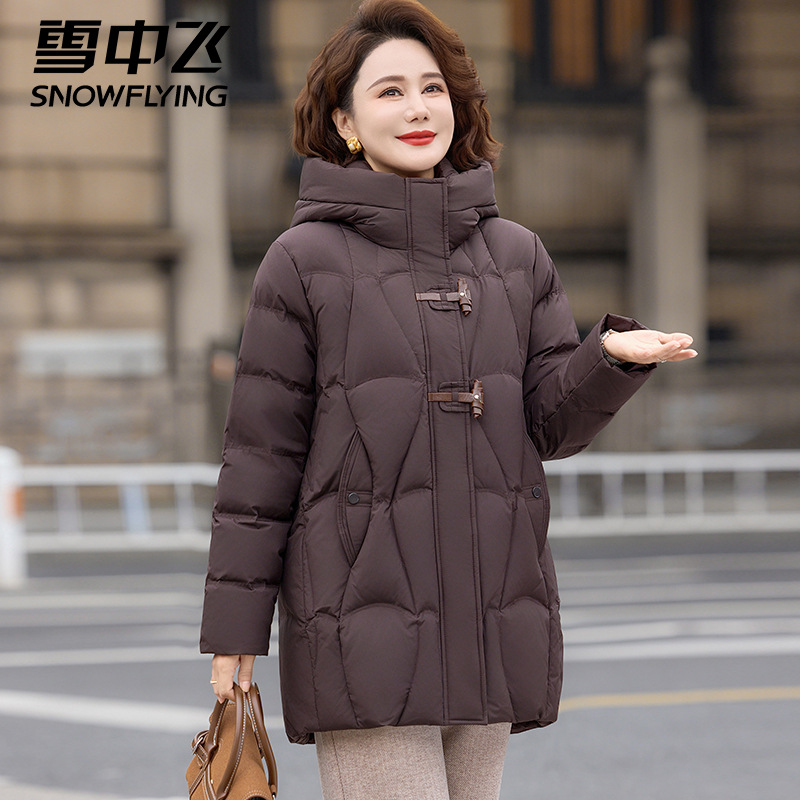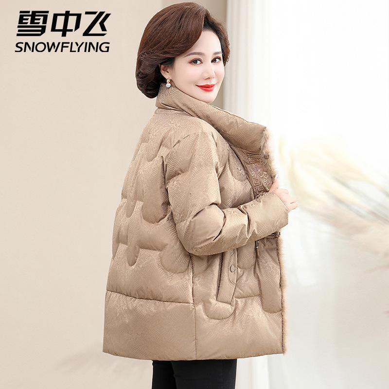 雪中飞时尚妈妈羽绒服女款冬装外套2025新款宽松保暖中老年人女装