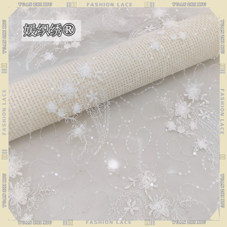 メッシュ刺繍ビーズレースウェディングドレスチャイナファッションドレス生地アクセサリー DIY 在庫あり