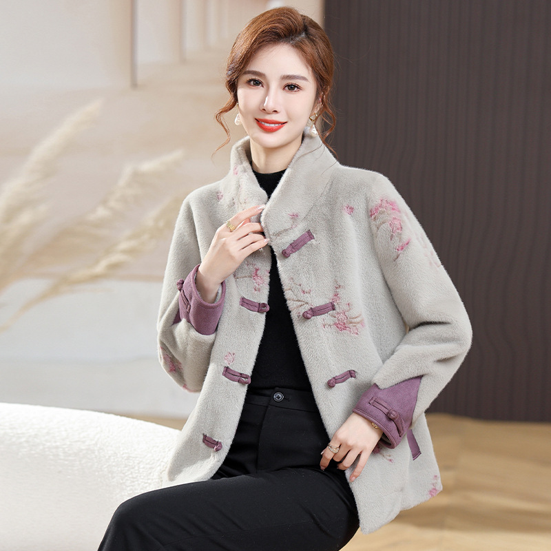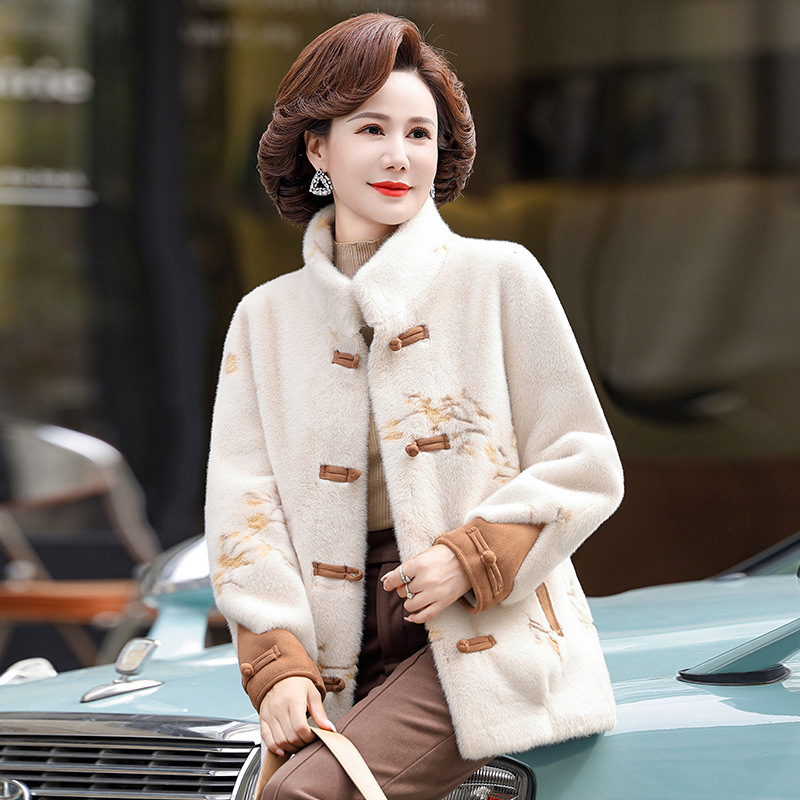 中高年のお母さんはミンクの毛皮のコートの中年の婦人服の秋冬のファッションの新型の中の上着のファッションをまねます。