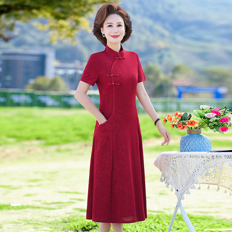 中国式のお母さんは40歳の修身婦人服の中年のワンピースを着ます。