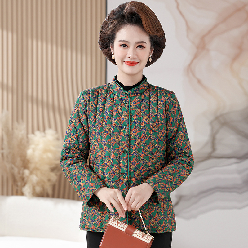 中高年冬服の小さい綿入れの女性のおばあさんのレジャーの花の綿入れの上着のお母さんの綿服とベルベットの厚い上着