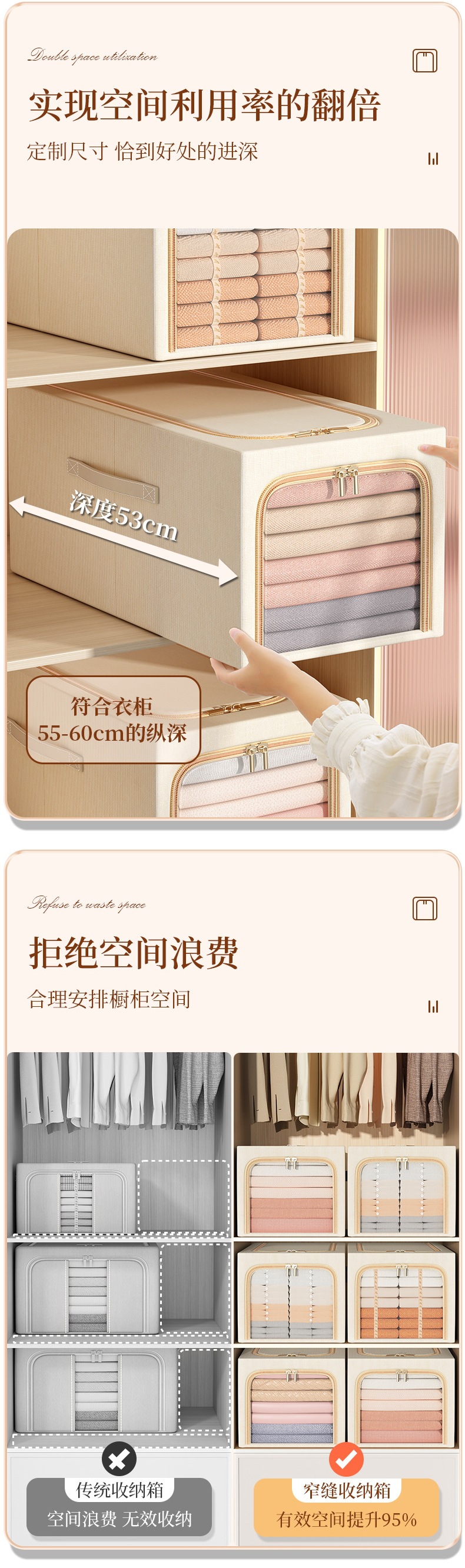 収納ボックス家庭用ファブリックワードローブ衣類整理ボックス衣類折りたたみ式大容量透明収納バスケット