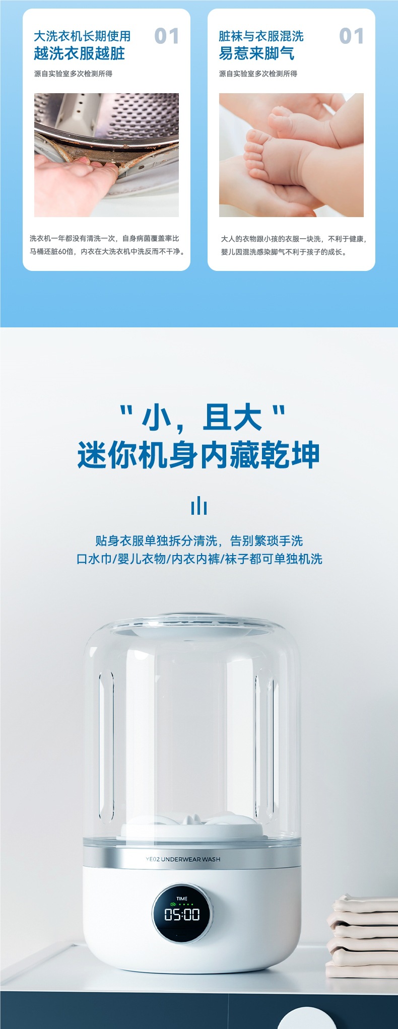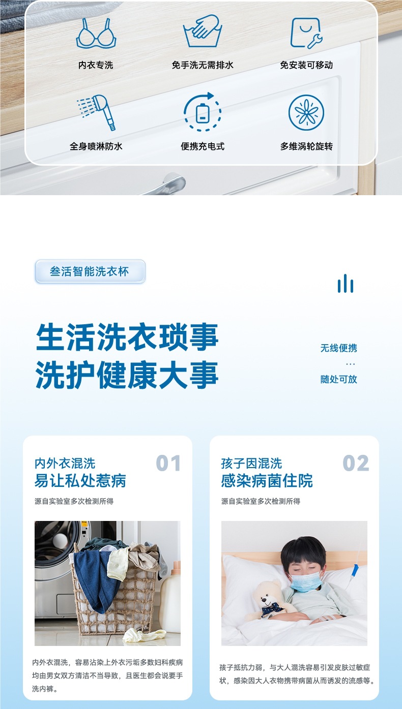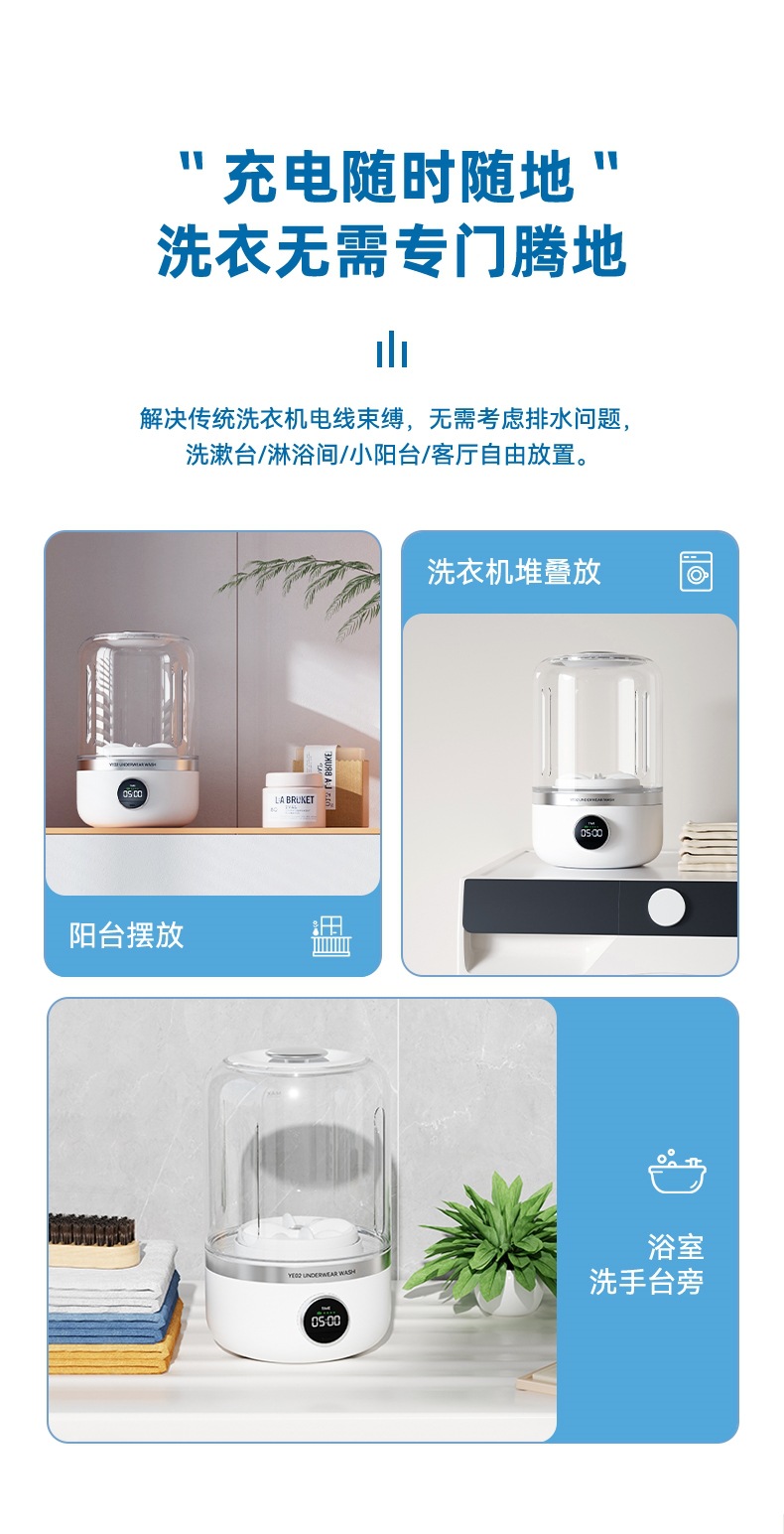 設置不要のミニ下着洗濯機、靴下と下着を洗うオールインワン小型ワイヤレスポータブル洗濯カップ
