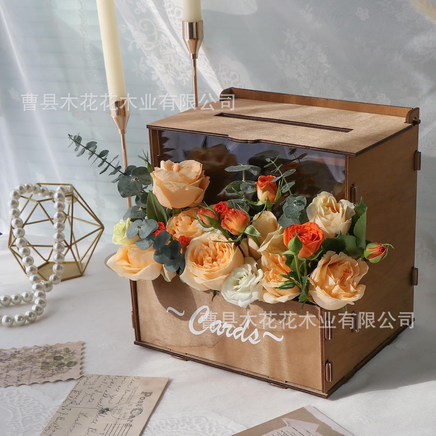 木製フラワーバスケット装飾小道具カードスロット付きウェディングパーティーグリーティングカード収納ボックスレターギフト記念日収納ボックス