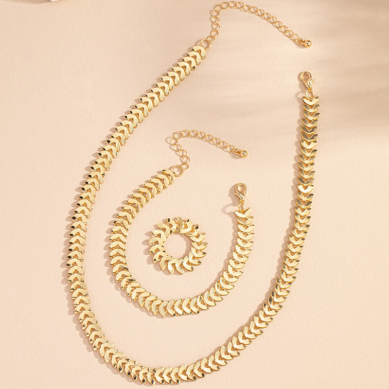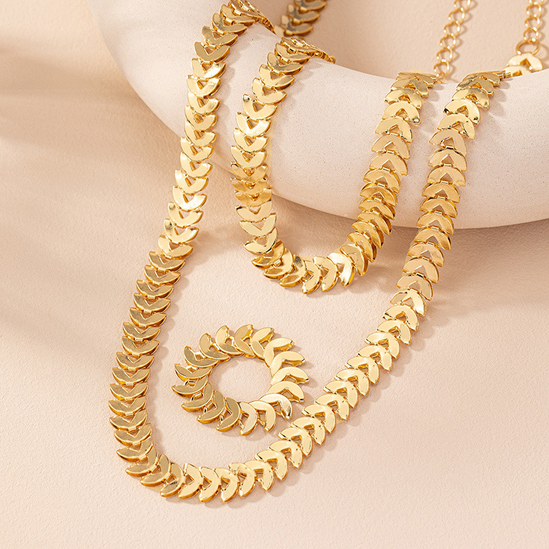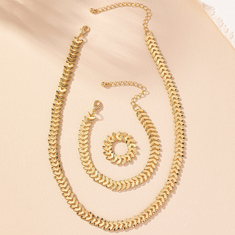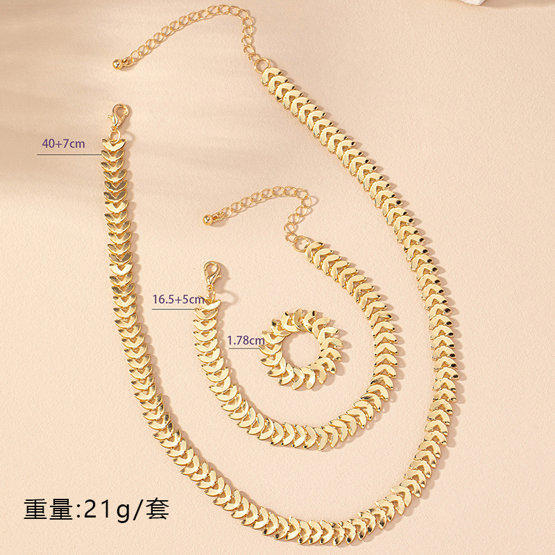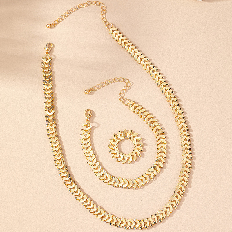 ヨーロッパとアメリカの新しい小麦穂ジュエリー 3 点セットニッチデザインファッショナブルで多用途なリーフリングブレスレットネックレスセット