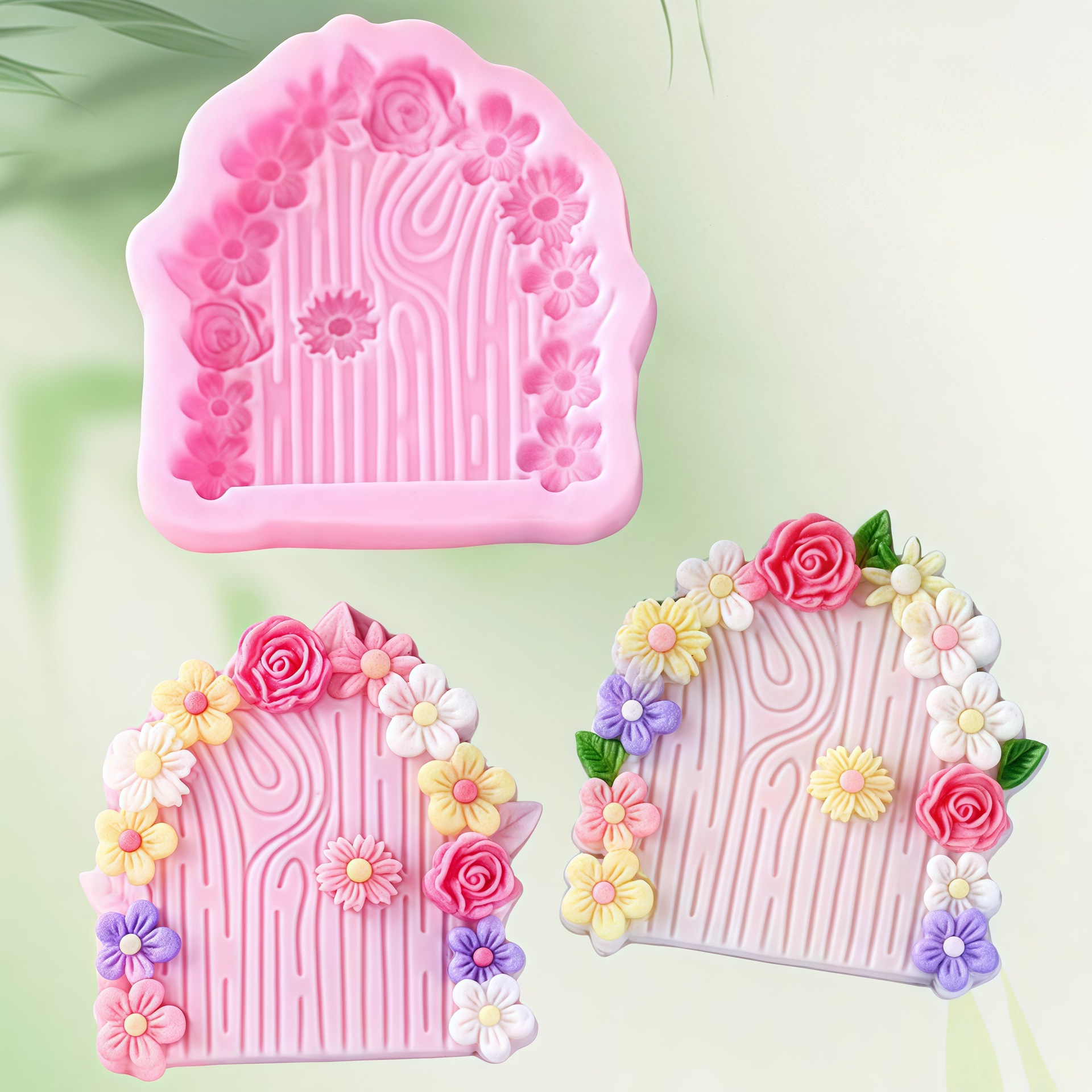 卡通通话花朵木门硅胶模具巧克力烘焙工具香薰蜡烛石膏蛋糕装饰模