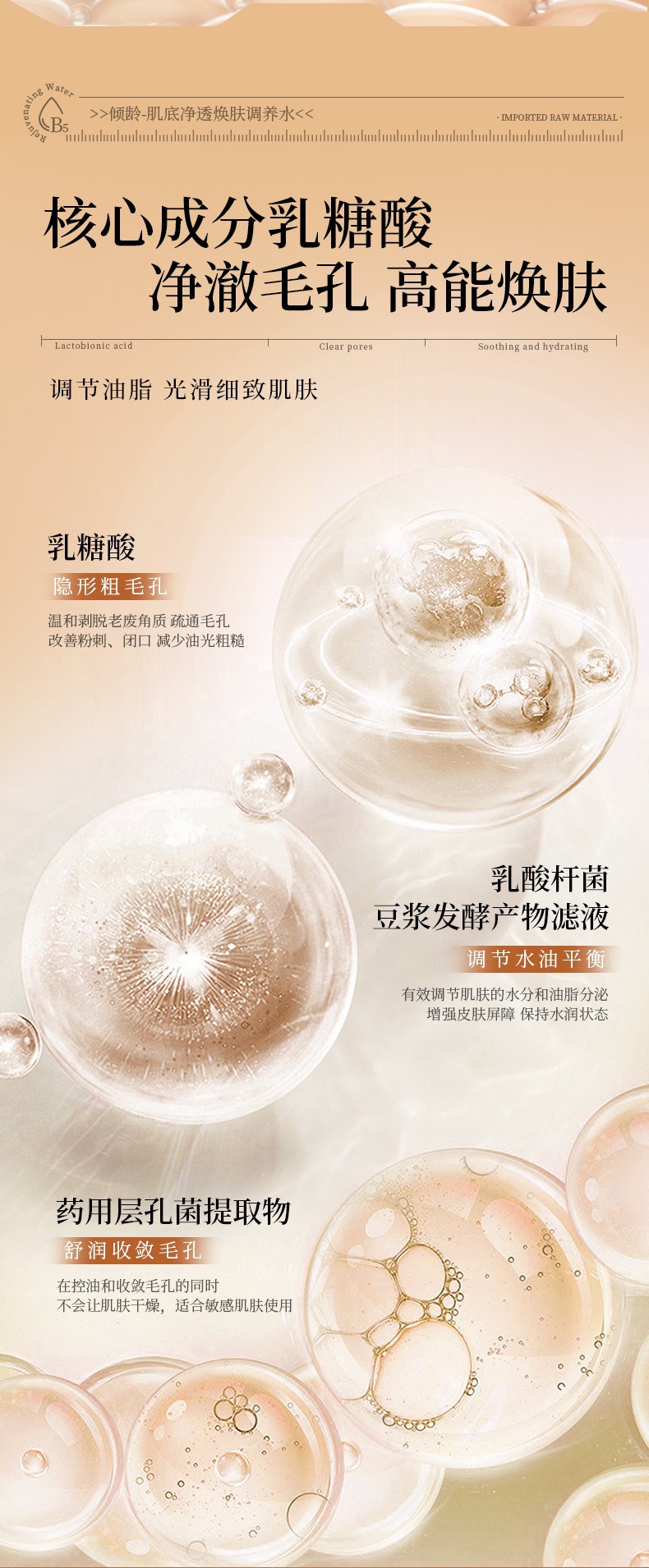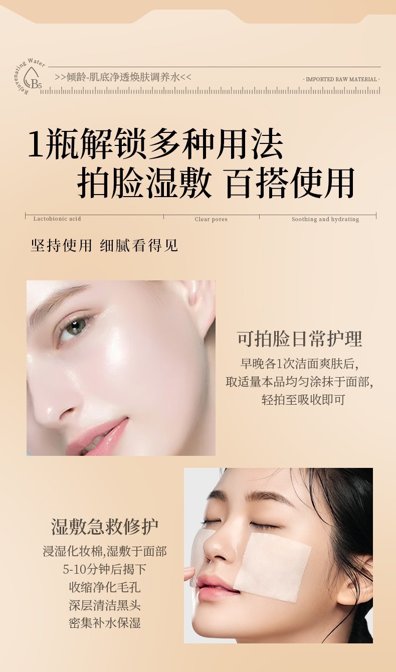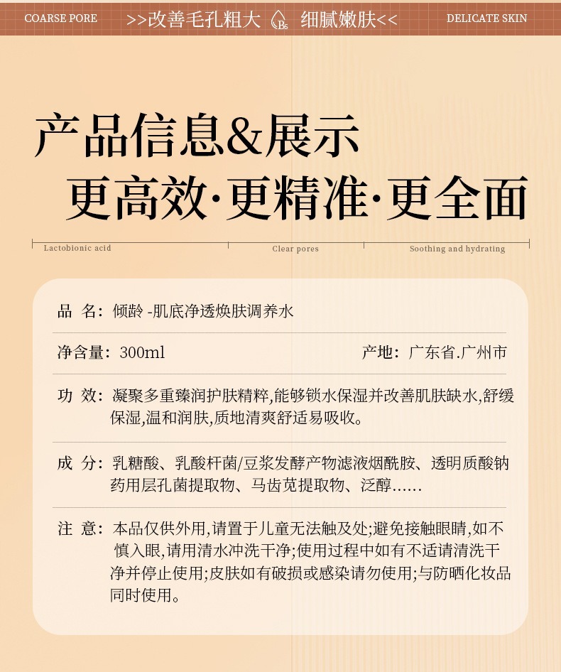 倾龄肌底净透焕肤调养水层孔菌乳改善暗沉爽肤水糖酸水提亮肤色
