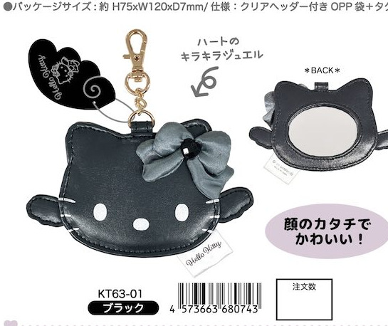 キティちゃんミニミラー(シルバー)予約受付中,キティ小鏡(ブラック)在庫あり