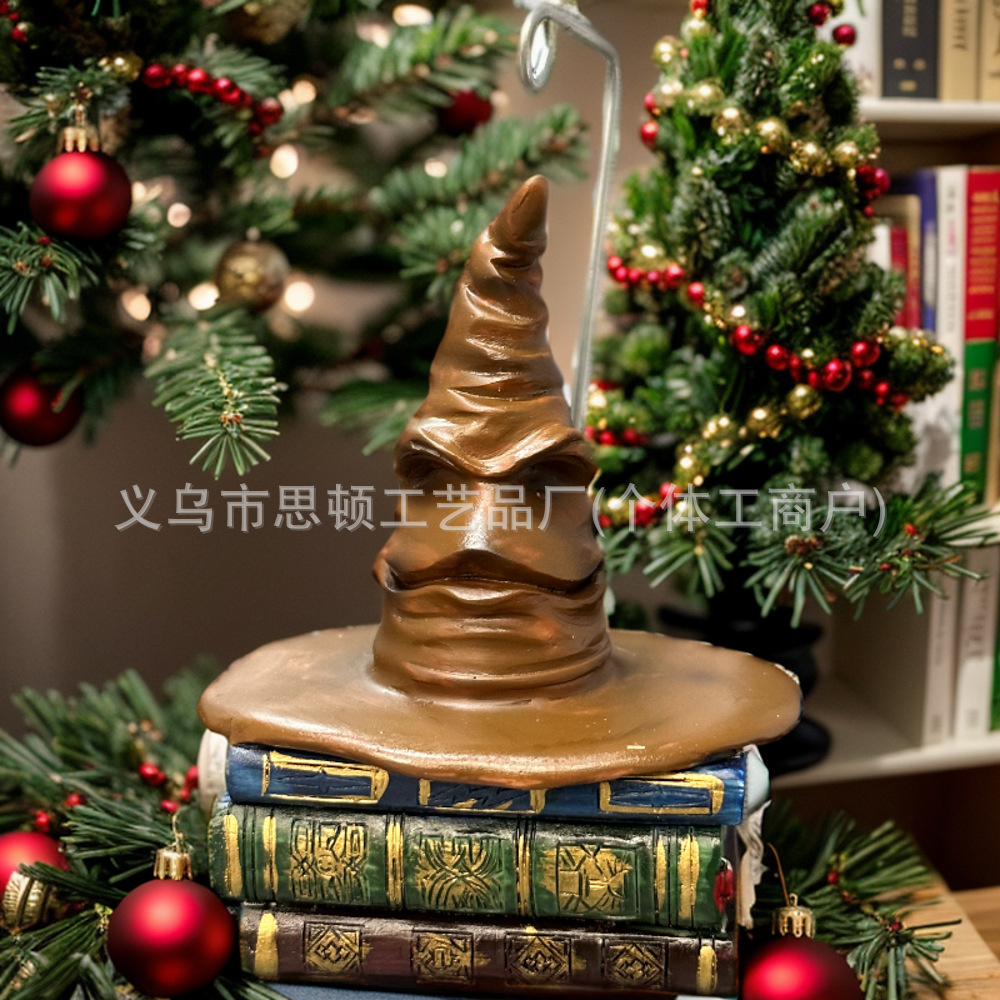 クリスマス、ハロウィン、ハリーポッターの学士帽飾り、樹脂工芸品、魔法の帽子デザイン、庭の装飾