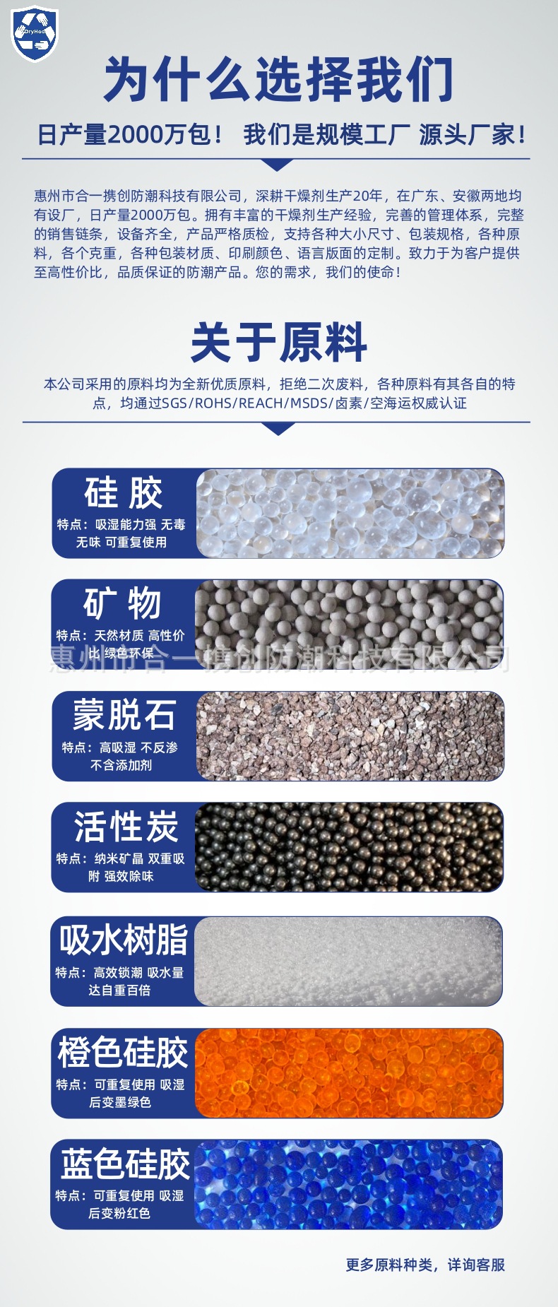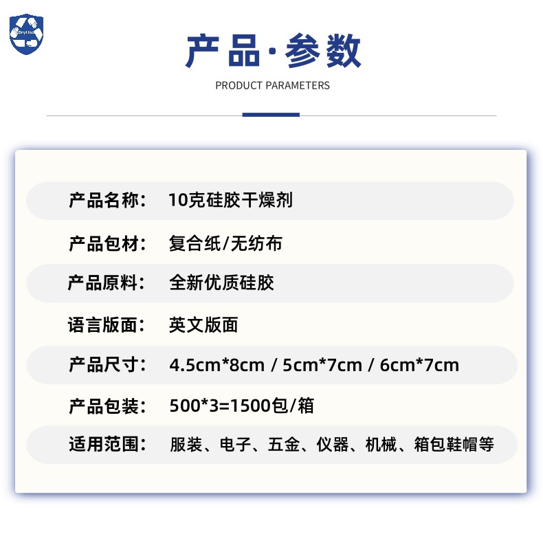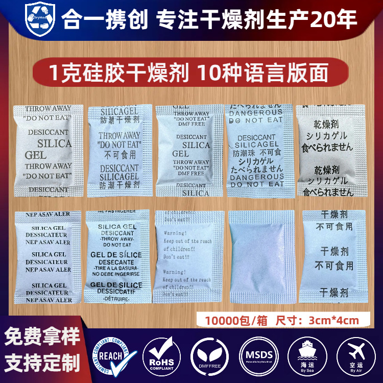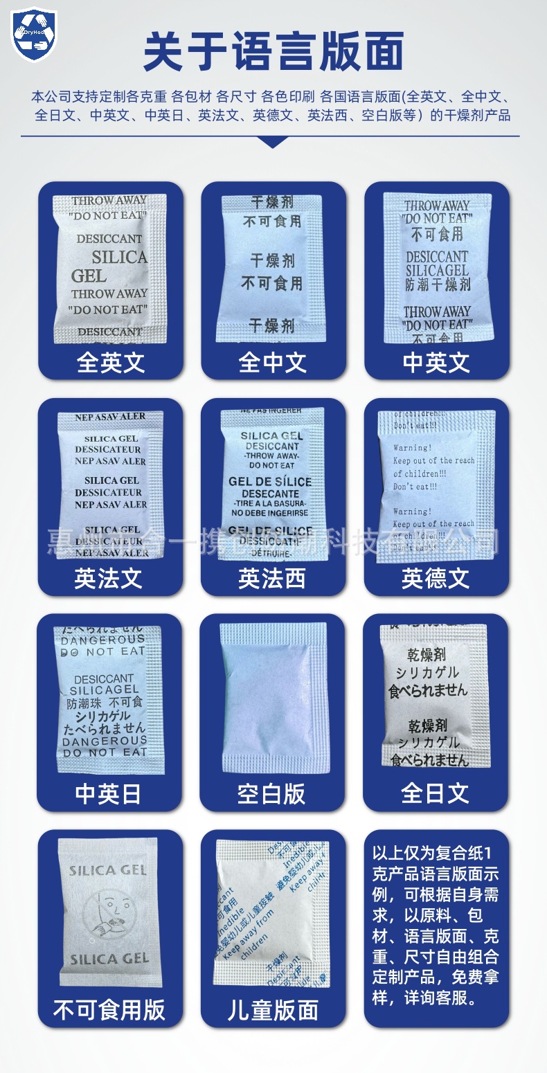 5克g干燥剂服装电子鞋子环保硅胶干燥剂英法西中文日文德文空白版