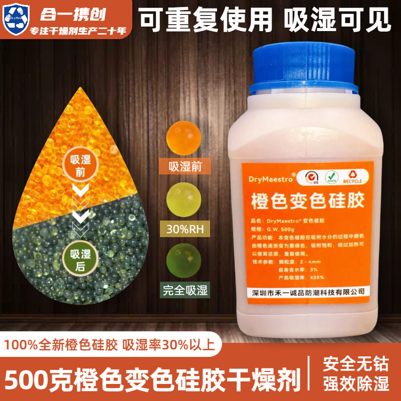500克g无钴橙色变色硅胶干燥剂钢琴吉他防霉除湿变压器单反防潮剂