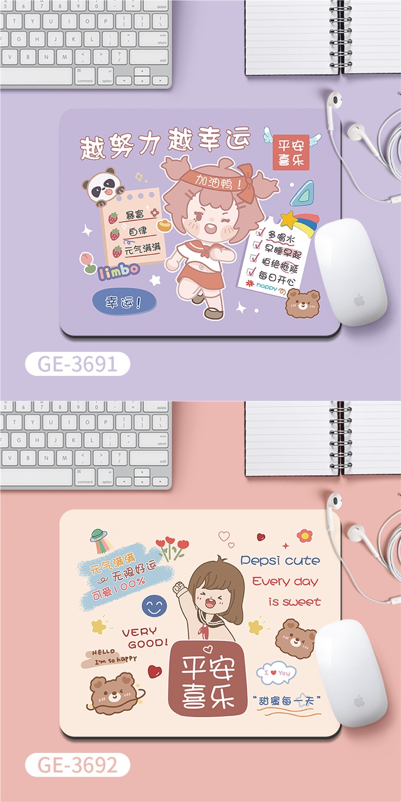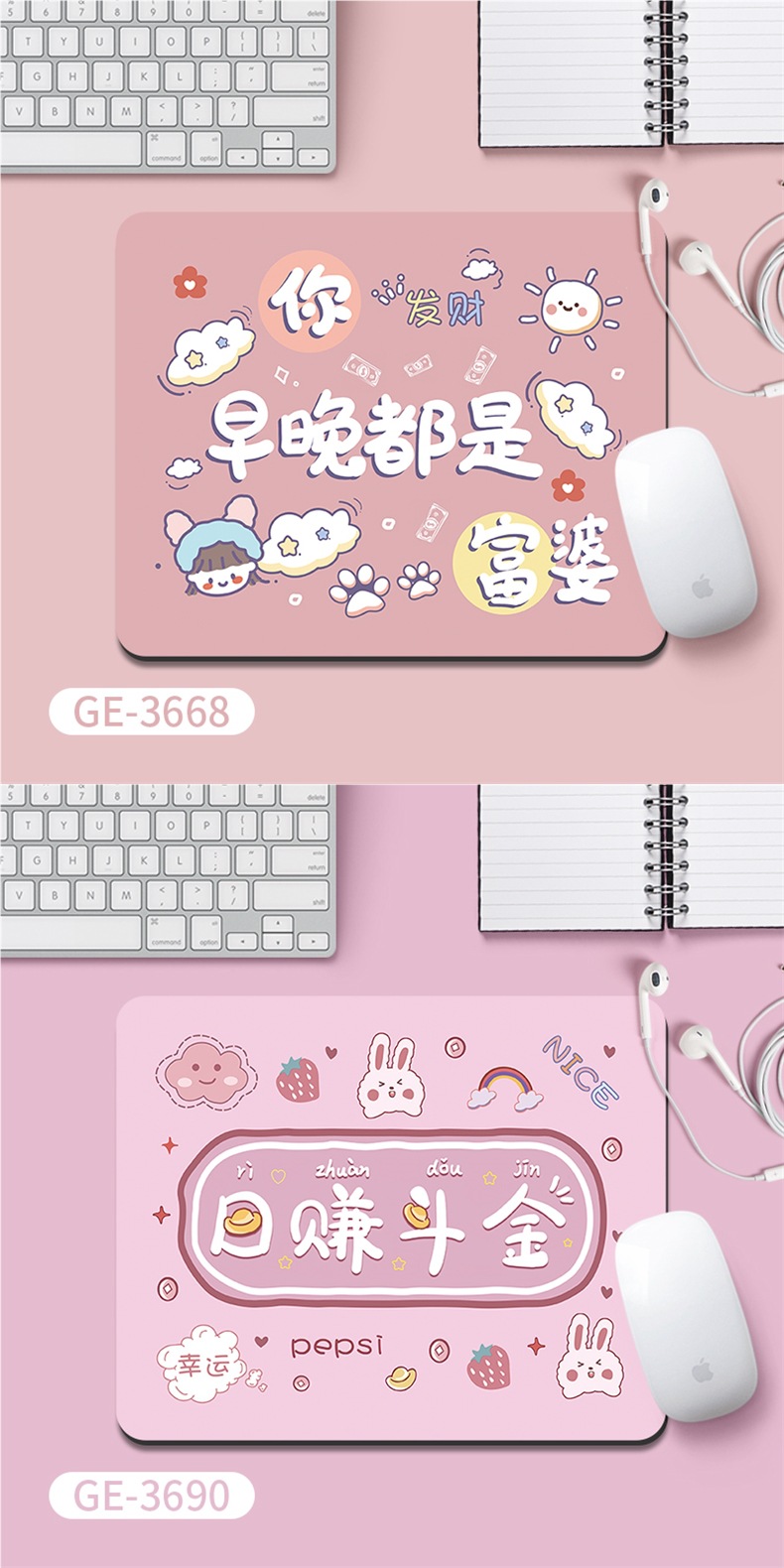 朝と夜はリッチウーマンマウスパッド、女の子のパーソナライズされたテキスト、シンプルなオフィスコンピュータキーボードパッド、テーブルマット