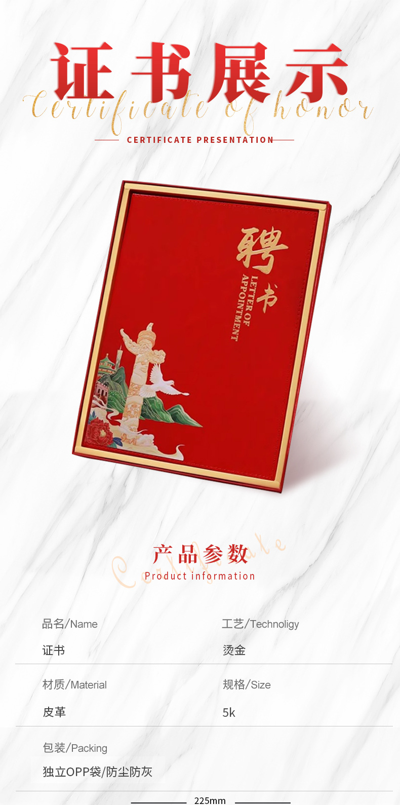 名誉証明書カスタム箔押し二重テープ内ページ賞状紙内芯カスタマイズ可能企業ロゴ証明書内ページcx