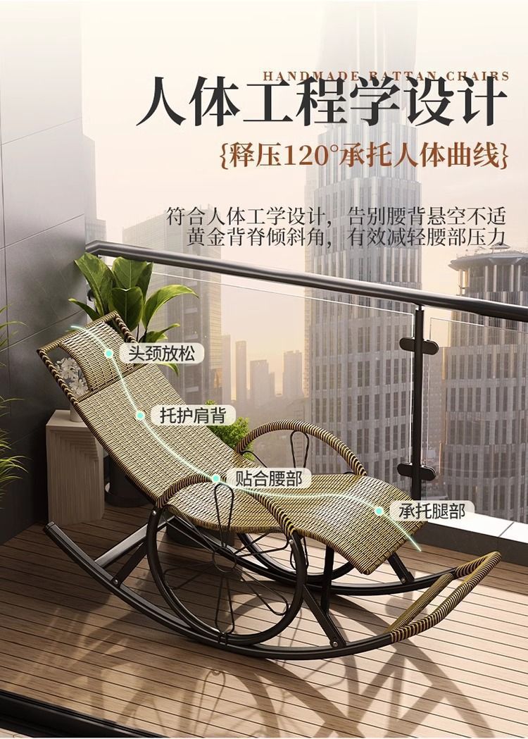ロッキングチェア、籐製リクライニングチェア、リクライニングチェア、バルコニー、ホームレジャー、リビングルーム、高齢者用レジャーチェア、怠惰な椅子