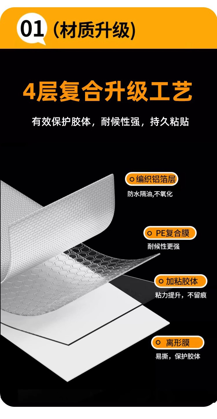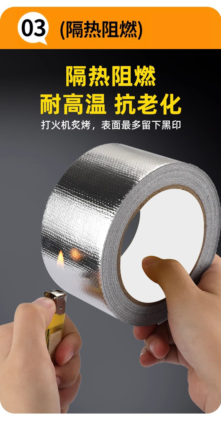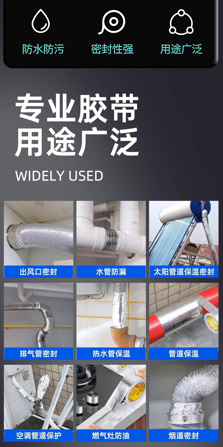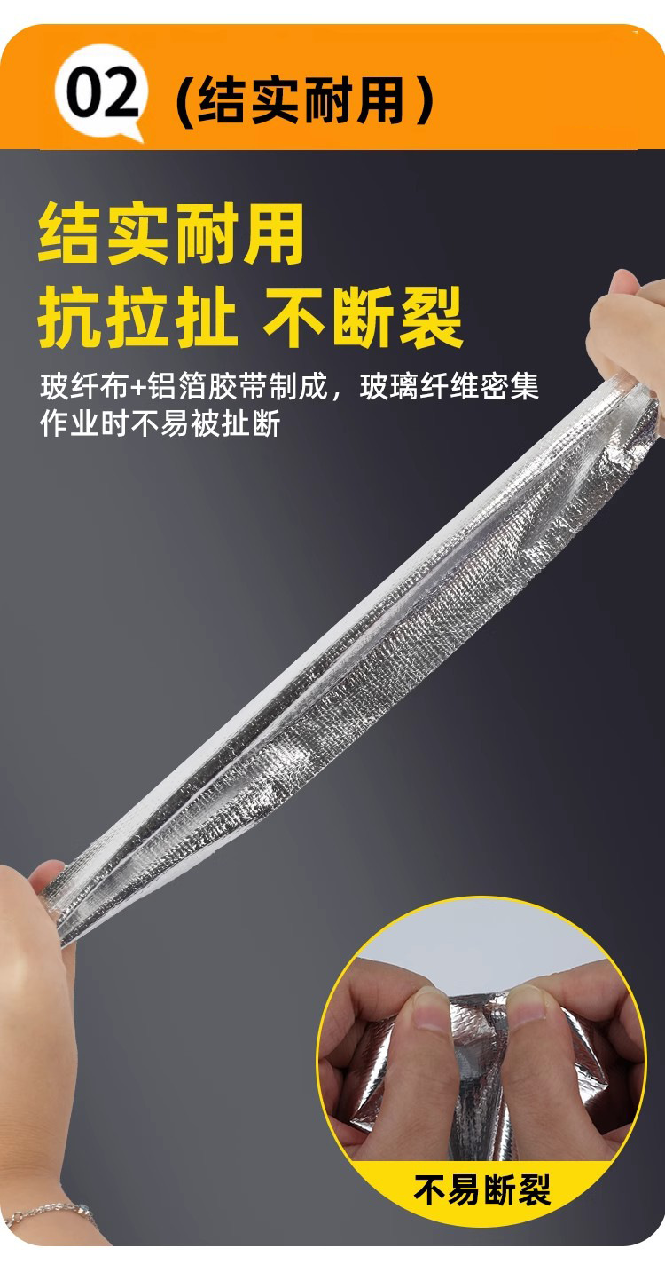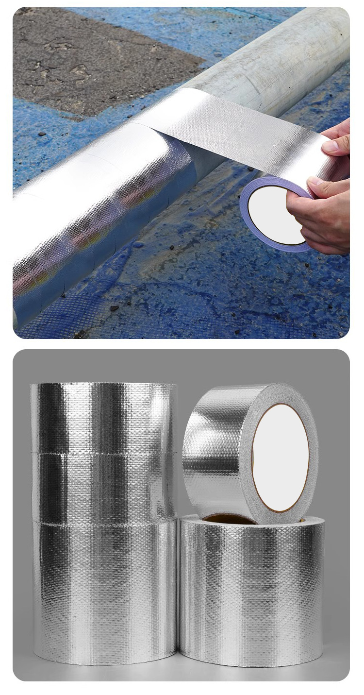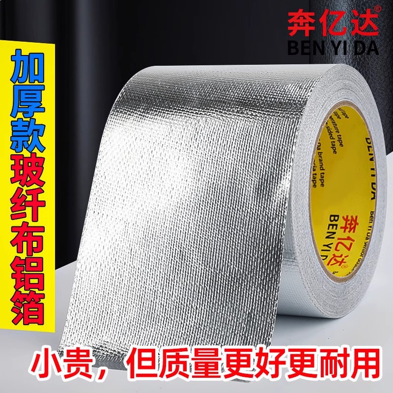 加厚耐高温铝箔胶带补锅贴油烟机灶台热水器管道包扎密封玻纤铝箔