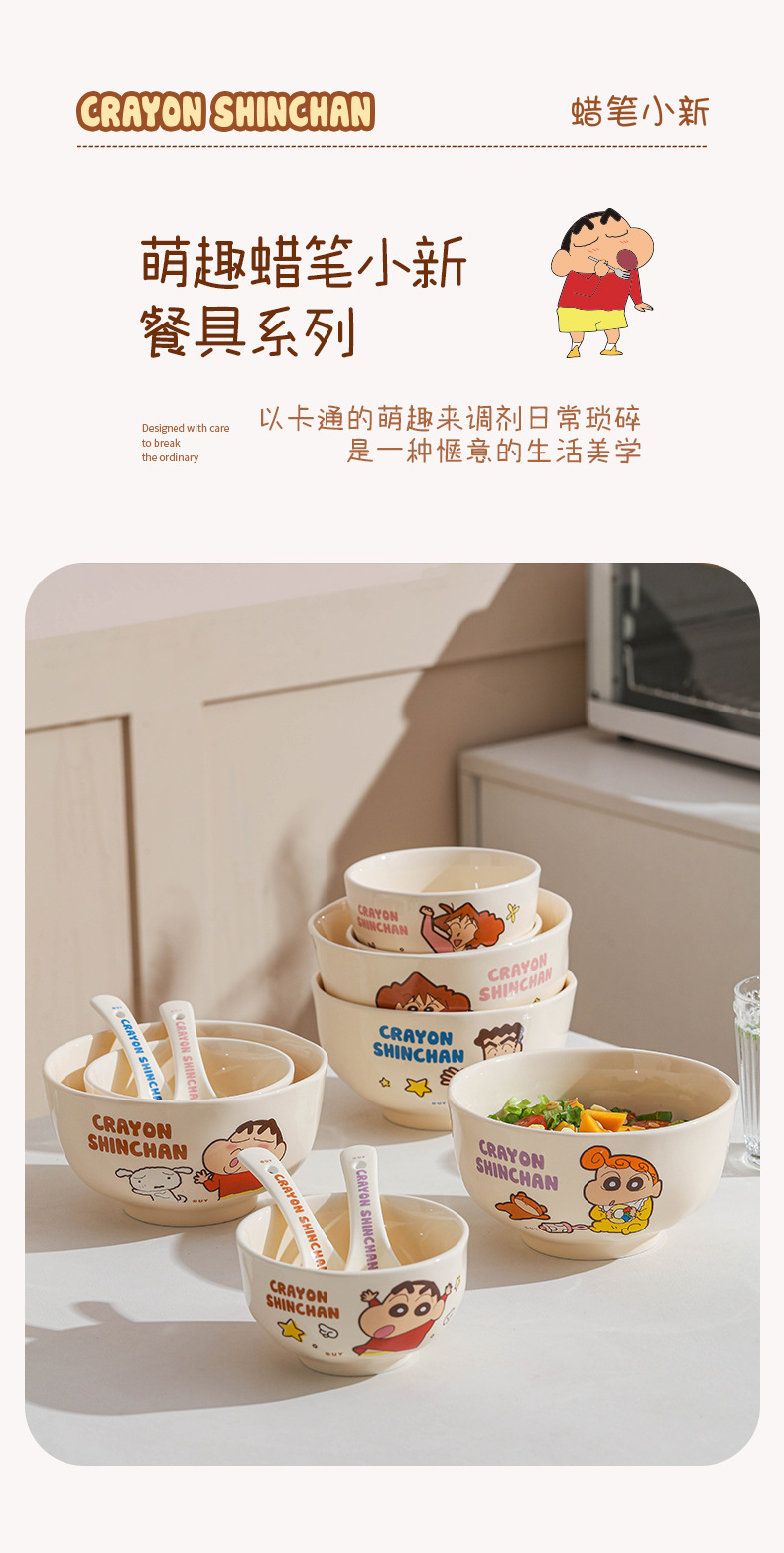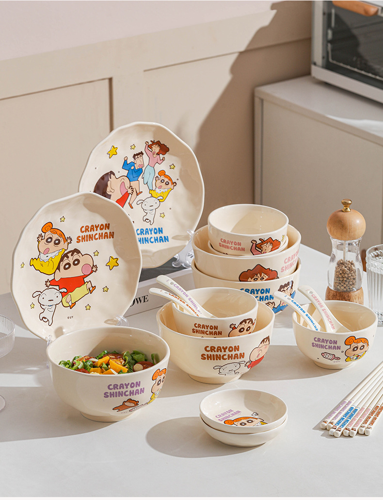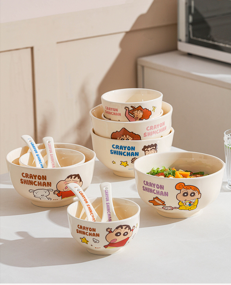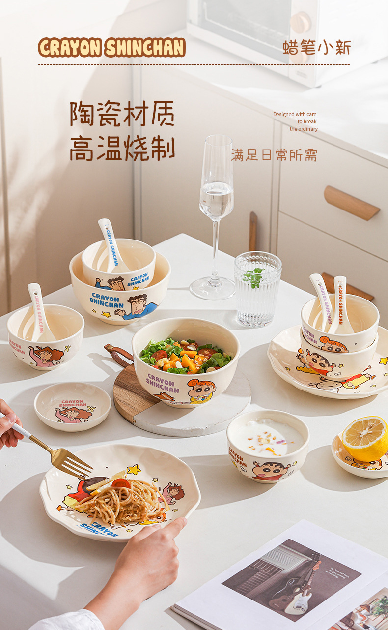 クレヨンしんちゃん漫画セラミックボウル高価値セラミック食器子供用家庭用丼ディナープレートスプーンかわいいスープボウル