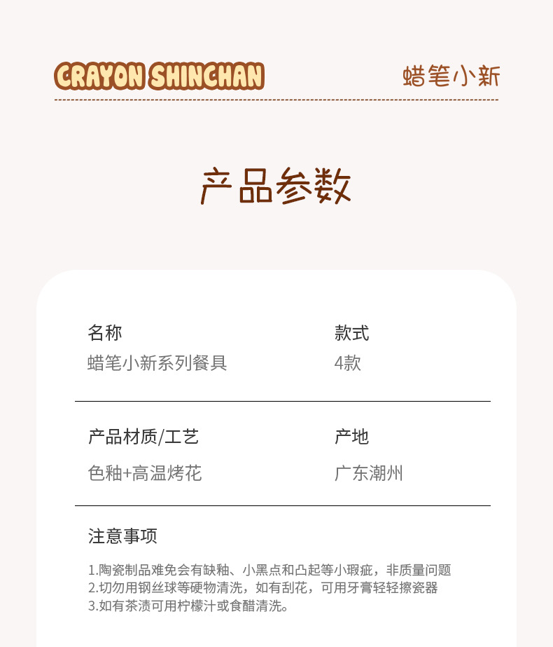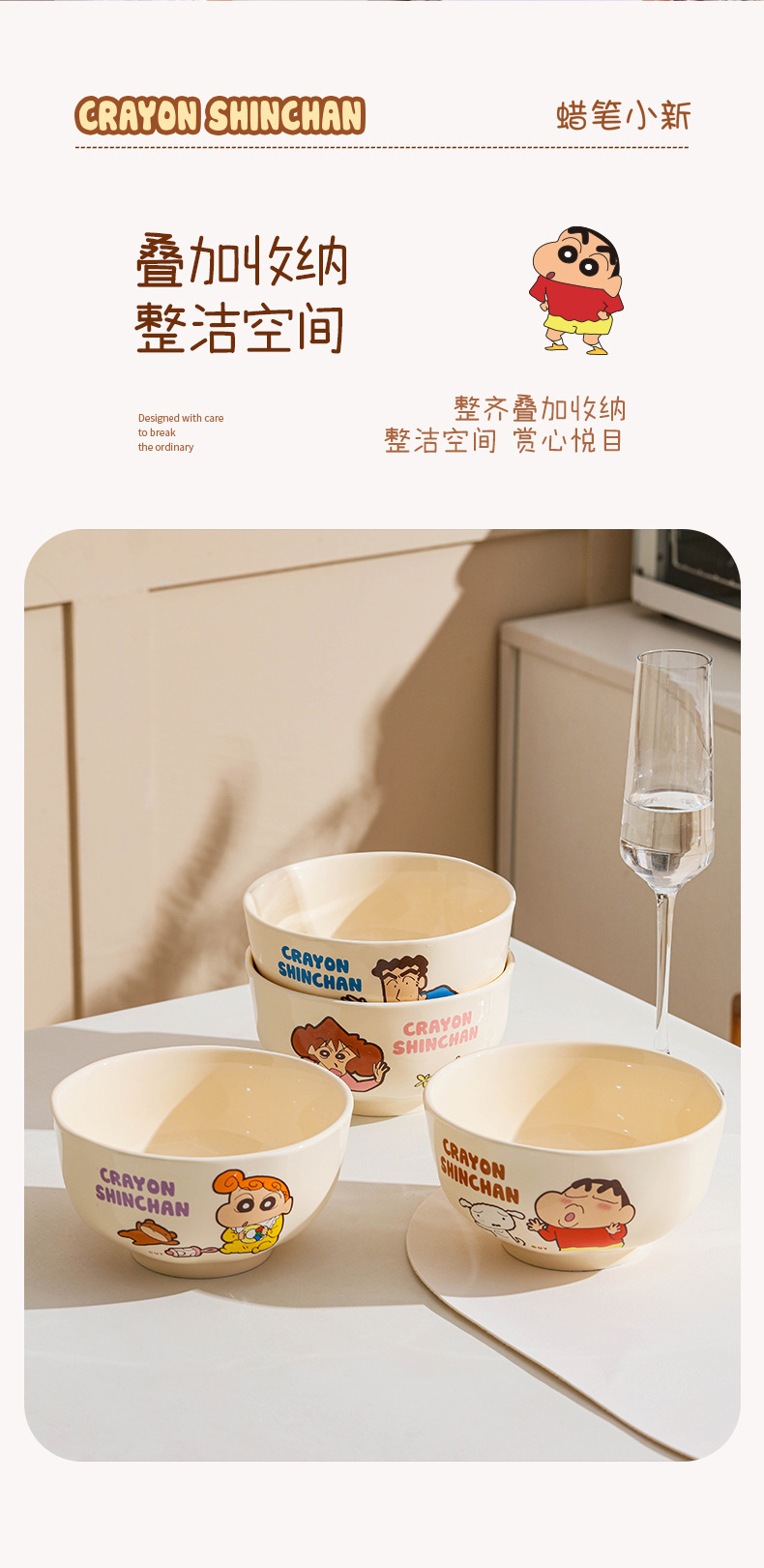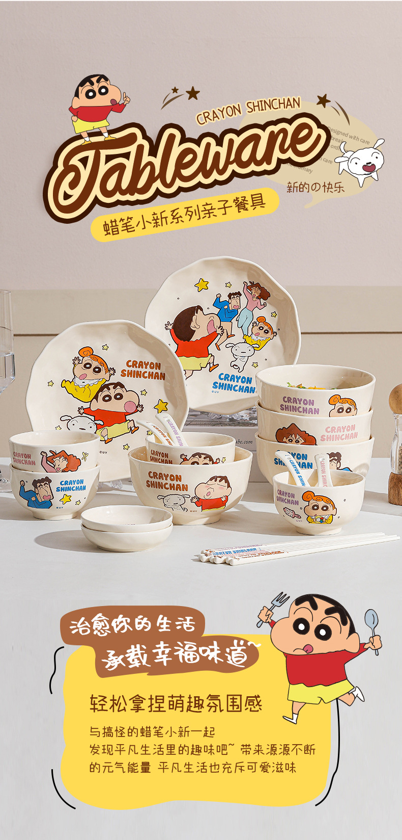 蜡笔小新联名陶瓷饭碗家用米色碗可爱亲子系列卡通餐具汤碗日式碗