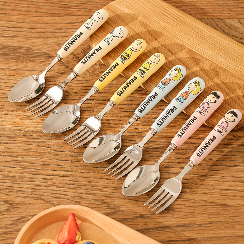 正規品スヌーピーステンレススプーンセラミック柄スプーンフォークライス子供赤ちゃん食器フォークスプーンフルーツフォーク