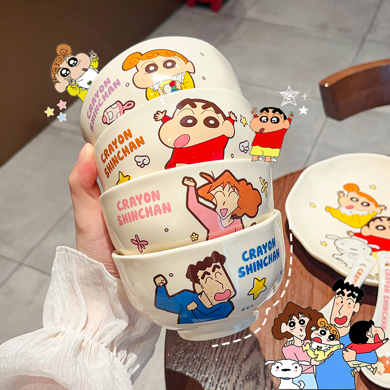 クレヨンしんちゃんコラボ かわいい子供用米色シリーズ 高品質家庭用漫画風陶器食器ボウル