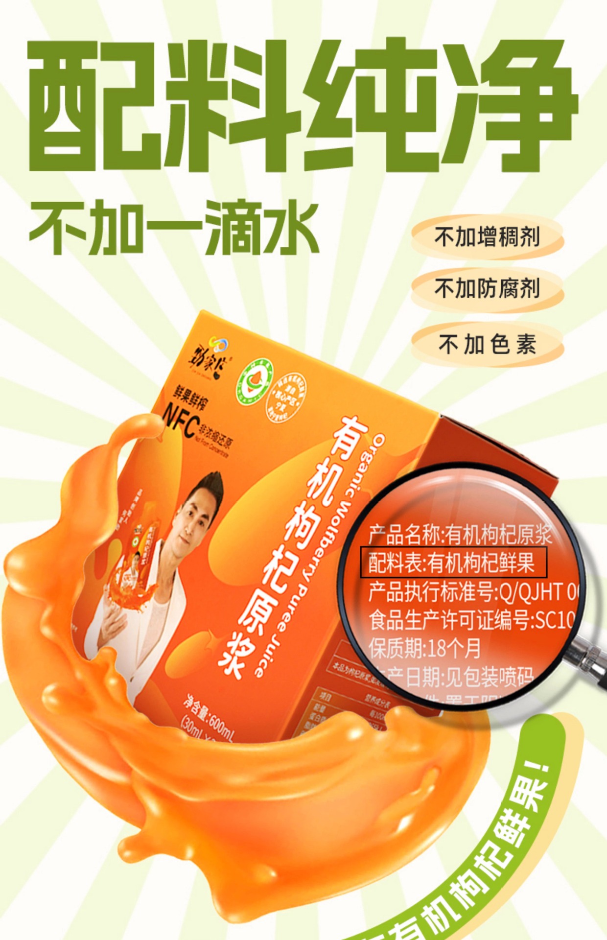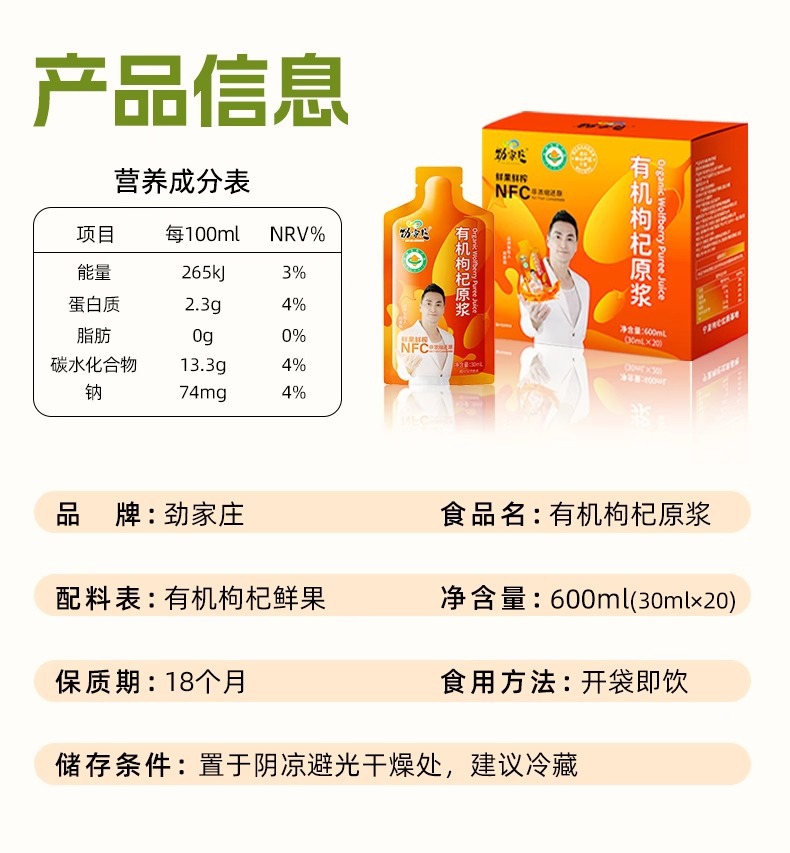 Jinjiazhuang 有機クコピューレ NFC 原液ジュース Hejiajin 公式寧夏紅クコジュース工場卸売