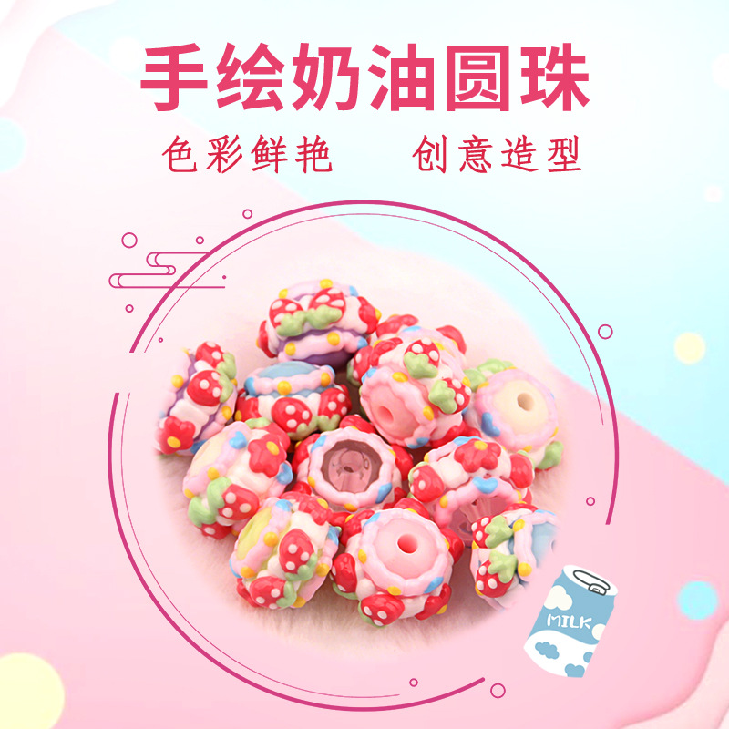 通孔重工カラー手描きクリームビーズアクセサリー携帯チェーンキーホルダーチェーンdiy手作りビーズ