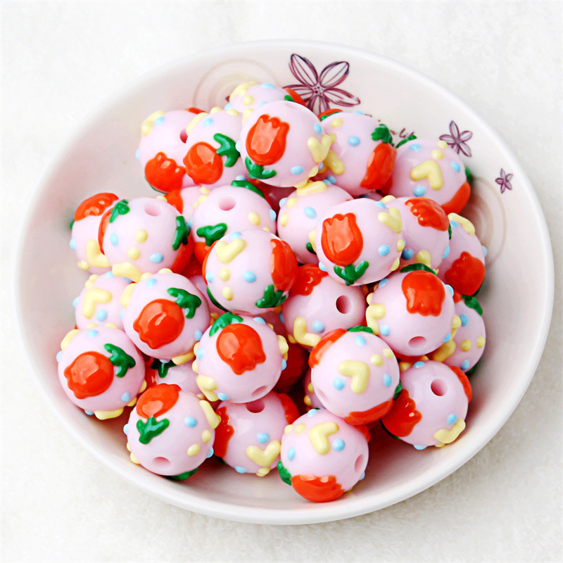 16新商品の清新な愛の花の彩色は丸い玉のアクリルの手の絵の玉のDIYの携帯電話のチェーンの数珠のアクセサリの部品を描きます。