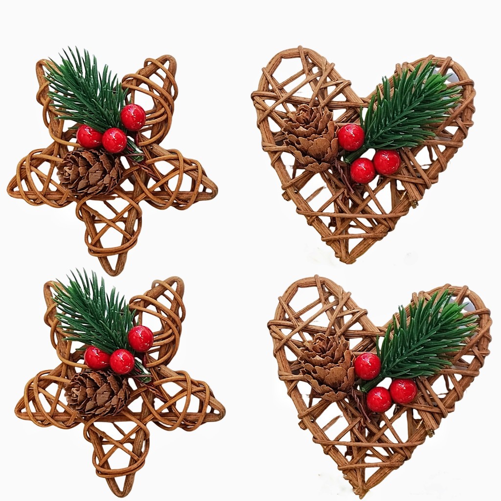 クリスマス松針五芒星ハート型ギフトボックス装飾クリスマスツリー吊り下げストラップdiyクリスマス手作り藤リングアクセサリー