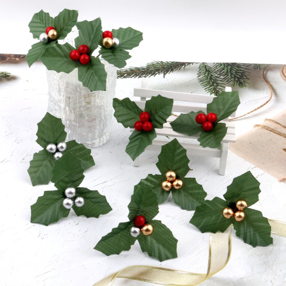クロスボーダー直供装飾花束クリスマス挿し木紅果三角葉枝ハリー葉DIYミニクリスマス装飾品