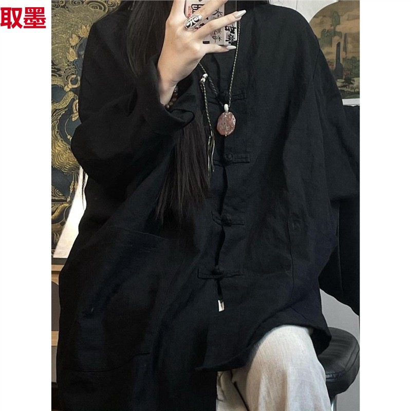 2024春の新中国風上着禅意茶服清冷盤ボタンゆったりコート綿麻シャツ長袖
