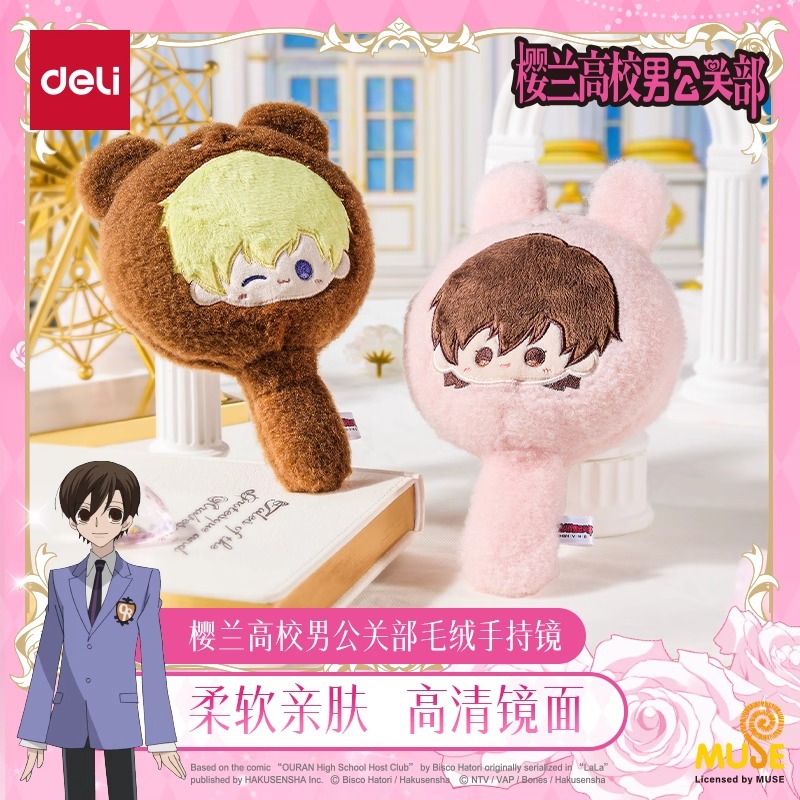 得力樱兰高校男公关部联名动漫周边萌趣可爱毛绒手持镜化妆镜便捷