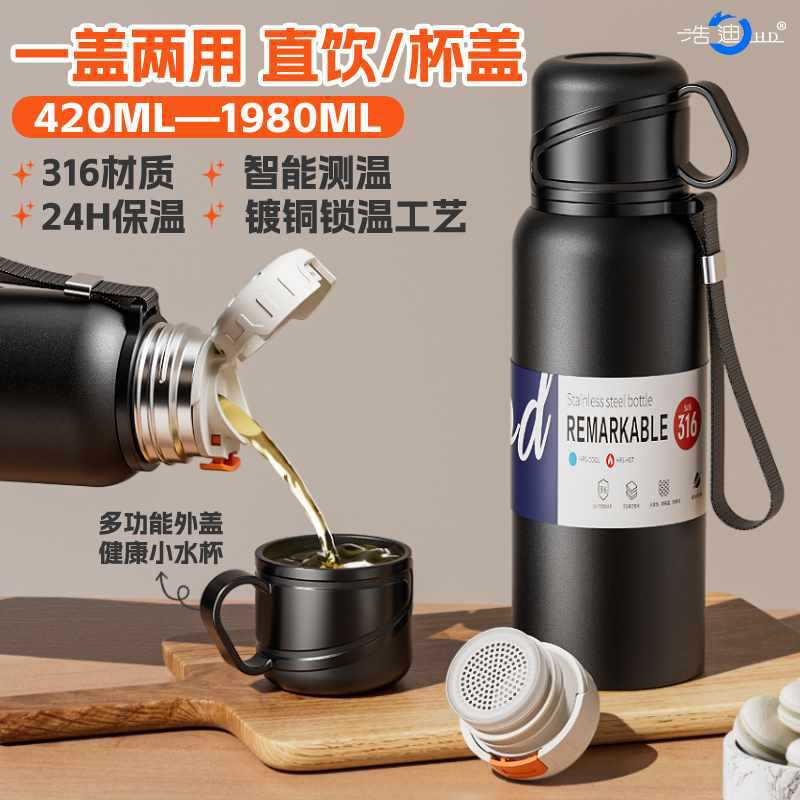 ✅大容量保温杯316男女不锈钢茶水分离双盖水杯便携车载户外